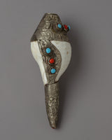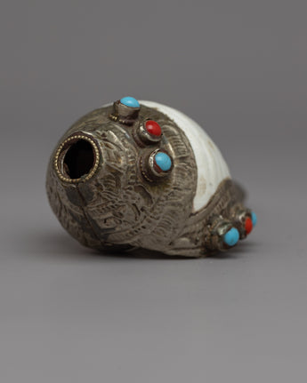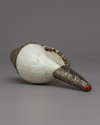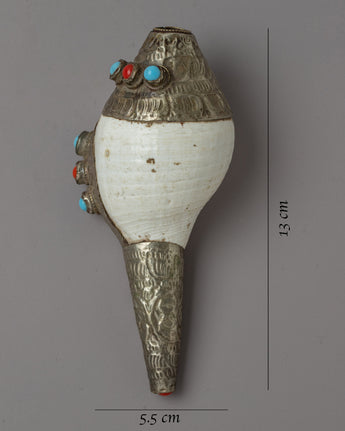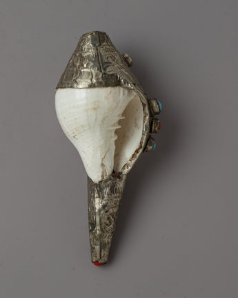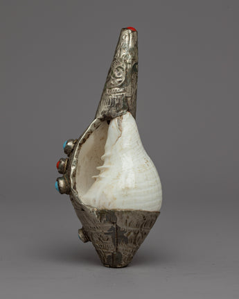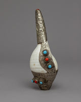 With gemstones inlaid, the Sankha is further enhanced, giving this holy object a touch of opulence and radiance. This Sankha is a visual masterpiece as well as a spiritual tool because each gemstone stands for distinct qualities and energies.