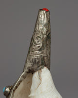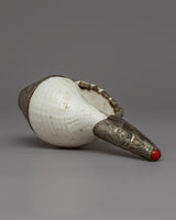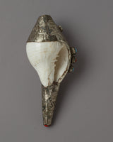 We are pleased to present our Natural Conch Sankha, a tasteful fusion of sophistication and spirituality. This Sankha was painstakingly made with a Sterling silver body that harmonizes beautifully with the conch shell to create a captivating work of art.