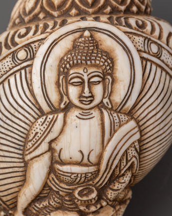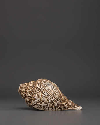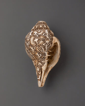 Shakyamuni Buddha Carved Conch | Handcrafted Tibetan Buddhist Ritual Object