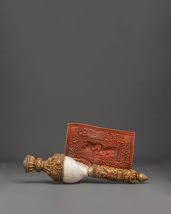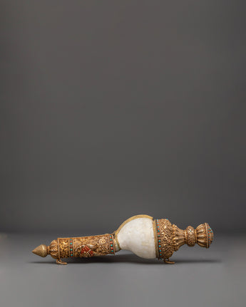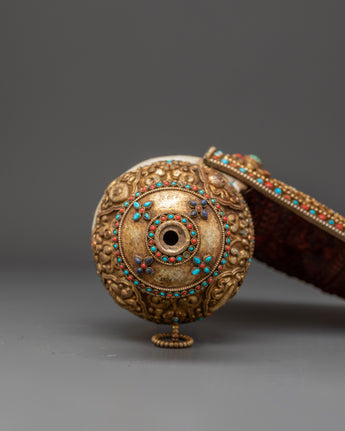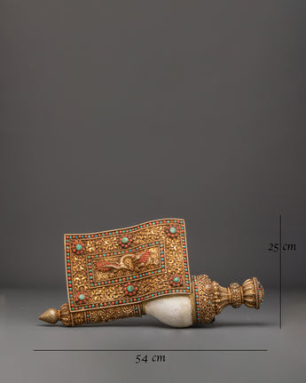 Handmade Tibetan Buddhist Conch Shell | Gold Plated Ceremonial Sankha Horn