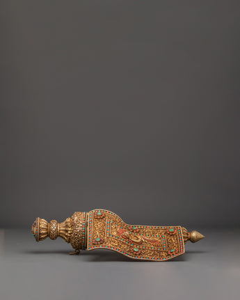 Perfect for Buddhist practitioners, meditation centers, and collectors of Himalayan spiritual art, this conch brings authentic ceremonial presence to any sacred space. Whether used in actual ritual practice, displayed as Buddhist altar decor, or appreciated as traditional religious artifacts, this piece radiates profound spiritual energy. The combination of natural conch shell with masterful metalwork and precious stone inlays makes this Tibetan Buddhist conch shell an exceptional centerpiece for any collection of ceremonial sankha horns and sacred monastery instruments.