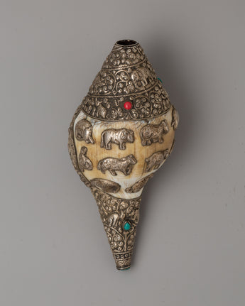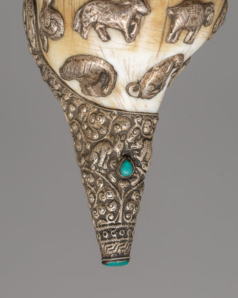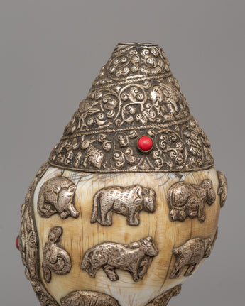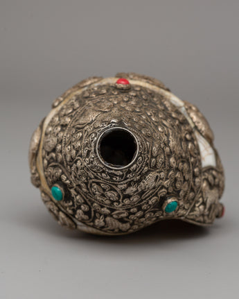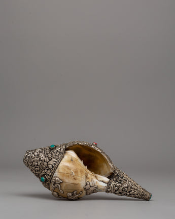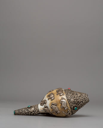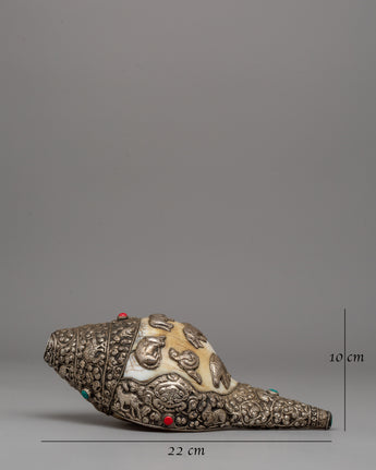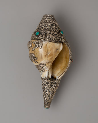 Tibetan Conch Sankha with 97.5% Silver | Spiritual Buddhist Shell