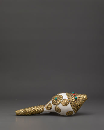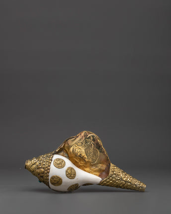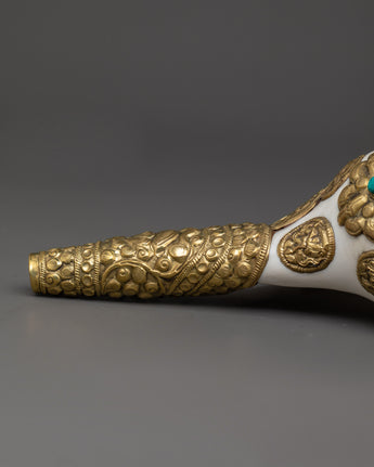 Tibetan Ritual Brass Conch Shell | Handcrafted Traditional Conch Shell Sound Offering Tool