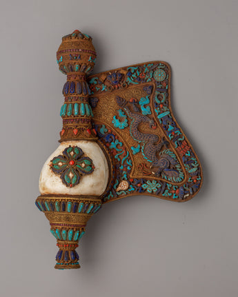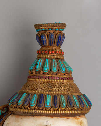 Tibetan Ritual Conch Shell (Shankha) with Precious Stones | Spiritual Practices