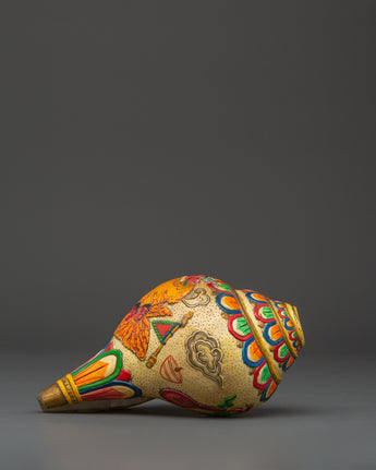 Tibetan Ritual Shankha | Hand-Painted Conch Shell with Acrylic Color
