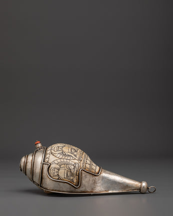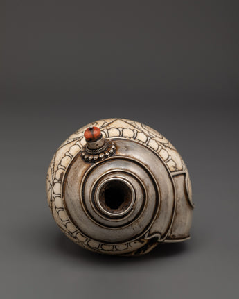 Tibetan Silver Conch Shell | Silver-Wrapped Ritual Shankha