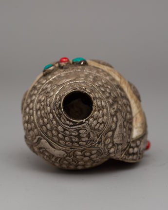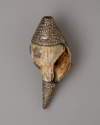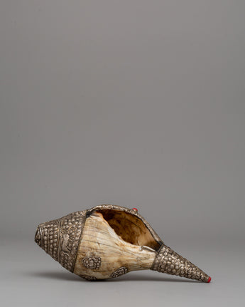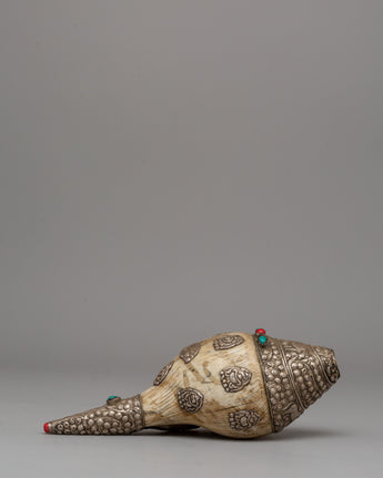 Tibetan Silver Conch Shell Sankha | Buddhist Artisan Decor