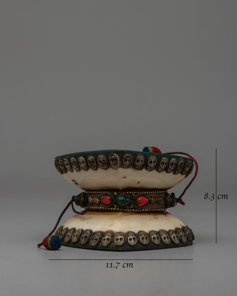 Handcrafted Tibetan Skull Damaru Drum | Ritual Instrument for Meditation