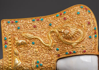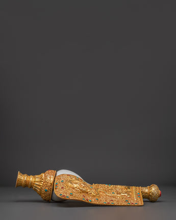 This Traditional Conch Shell combines craftsmanship with rich decorative elements, making it a standout piece for any home or spiritual space. Crafted from copper and beautifully gold-plated, the shell is further enhanced with artificial stones like turquoise and coral, This conch shell with a dragon pattern is ideal for collectors, decorators, or anybody looking for a meaningful home décor piece. It will make a strong statement in any environment. Whether exhibited in a living room, office, or as part of a selected collection, it gives a sense of elegance and mythological significance to any setting. The combination of natural elements and mythical artistry transforms this conch shell into a sign of power and good fortune, perfect for individuals who value exquisite craftsmanship and cultural symbolism.