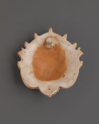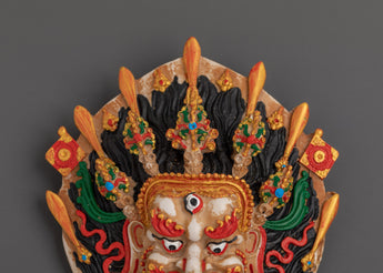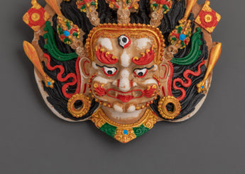 Bhairav, a ferocious guardian god, infuses your meditation or altar place with heavenly protection and strength. The complex workmanship pays homage to Himalayan traditions, blending cultural artistry and spiritual meaning to produce a powerful ornamental item that enriches any holy space.This Bhairav mask, perfect for your meditation room, ritual chamber, or home altar, not only looks great but also acts as a potent talisman to attract positive energy and repel negativity. This holy wall hanging symbolizes protection, fortitude, and dedication, making it an ideal gift for spiritual practitioners or lovers of original Himalayan art.