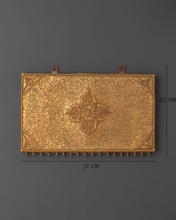 Measuring 31 cm in height and 22 cm in width, this wall hanging is ideal for placement on your altar, in your meditation room, or as a symbolic centerpiece in your living space. The gold plating offers a striking finish, while the copper provides strength and durability, ensuring this piece will be a lasting addition to your collection.