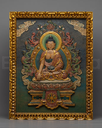 Shakyamuni Buddha is the historical Buddha, the originator of Buddhist philosophy, and is commonly referred to as "the Buddha." In the Buddhist religion, each "Kalpa" (a Buddhist eon) is considered to have its own Buddha, whose teachings gradually fade until the next Buddha arrives. He is believed to have lived around 420 BC and spent most of his time preaching the teachings of Dharma. The Life of Buddha Thangka depicts his life in detail. He is regarded as a role model, mentor, and inspiration. The "dharma," or spiritual belief, and the "sanga," or Buddhist community, are said to secure his presence on Earth.