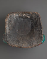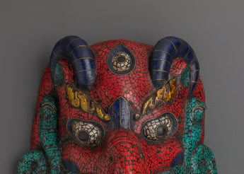 Measuring 30cm in height and 32cm in width, and weighing 1.94kg, this powerful piece is as substantial as it is meaningful. Each artificial stone is carefully set into the contours of the carved wood, creating a luminous balance of texture and color. The use of turquoise symbolizes protection and spiritual guidance, lapis lazuli represents wisdom and truth, while coral signifies life force and strength. Together, they make this mask a powerful talisman for elevating your environment. Traditionally used in Tibetan homes and temples to ward off negativity and invite blessings, Buddhist wall masks like this one serve as guardians of mindfulness and sacred space. This mask is not just a decorative object—it’s a spiritual companion that anchors your surroundings in protection, presence, and purpose.