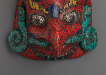 Transform your sacred space with this striking Handmade Buddhist Wall Mask, a spiritual fusion of Himalayan craftsmanship and symbolic energy. Carved from wood and inlaid with vibrant artificial lapis lazuli, turquoise, and coral stones, this mask embodies the protective and meditative presence found in Tibetan Buddhist tradition. Whether displayed in a meditation room, spiritual corner, or as a centerpiece of bohemian home décor, this wall mask radiates cultural richness and sacred intent.