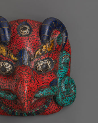 Handmade Buddhist Wall Mask | Tibetan Wooden Hanging