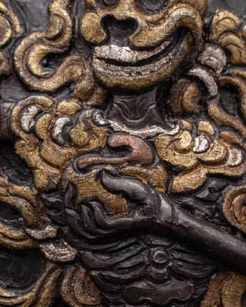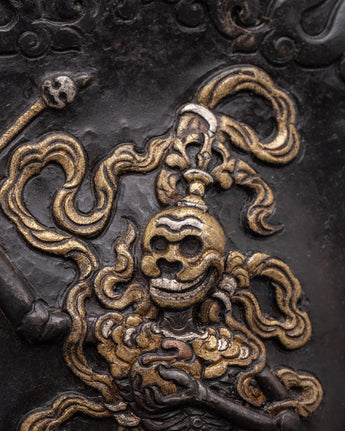 Spiritual Buddhist Wrathful Protector Wall Hanging | Tibetan Iron Silver Brass Religious Art