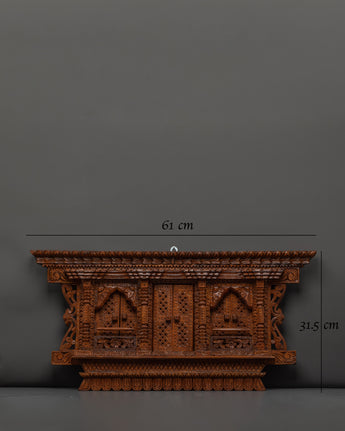 Elevate your home decor with this magnificent hand-carved wood wall hanging, which adds an authentic beauty to your living room. This beautifully detailed wooden art piece, measuring 31.5 cm in height and 61 cm in width, adds a touch of traditional elegance and cultural depth to any wall. Its wood construction and one-of-a-kind craftsmanship make it a classic decor piece that complements both modern and classic environments.