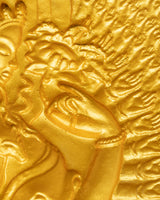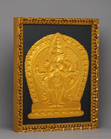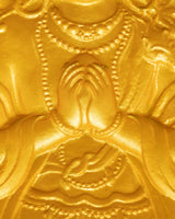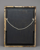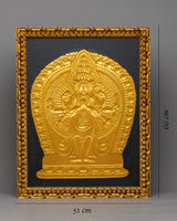 Chenrezig is the bodhisattva of compassion. This relief artwork of Chenrezig is made on a wooden ply with the deity crafted on clay. The thangka has a fiber border. The piece is a beautiful and intricate representation of the bodhisattva. It is a reminder of his compassion and his vow to help all beings achieve enlightenment. The artwork would make a great addition to any home or collection.