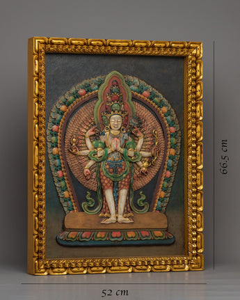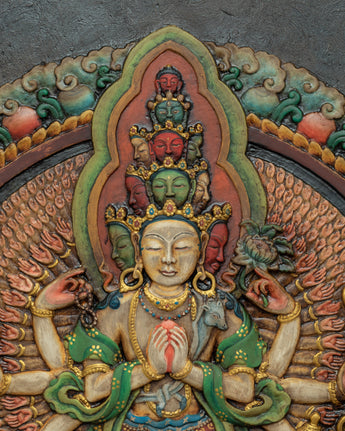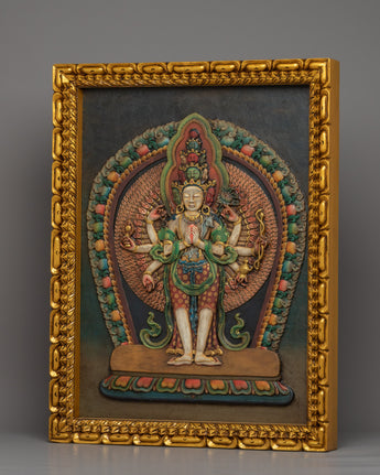 1000 Armed Chenrezig Mantra Practice Wooden Thangka | Traditional Tibetan Wooden Art For Meditation