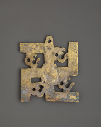 This Ganesh Om Swastik symbol Wall Hanging is 15cm tall and 13cm wide and weighs 0.42kg. The sculpture, expertly crafted from sturdy brass, features Lord Ganesha in its center, surrounded by sacred "Om" symbols and the auspicious Swastik design, a valued emblem in Hinduism said to bring wealth and confidence.