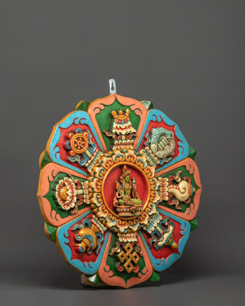 This intricately sculpted Green Tara wall piece weighs 2.18kg and displays the rich artistic tradition of Tibetan Buddhist handicrafts. Green Tara is honored as the Mother of Liberation, representing active compassion and wisdom. The intricate carving and acrylic colors bring her divine presence to life, making it an excellent spiritual present or a powerful addition to any Buddhist altar or sacred area. It is ideal for individuals seeking protection, direction, and inner tranquility in everyday practice.