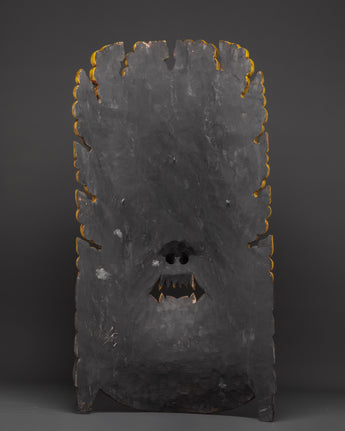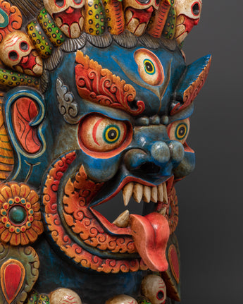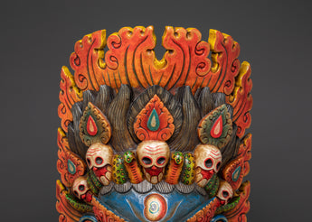 This mask, expertly carved from wood and hand-painted with vibrant acrylic colors, is more than just a spiritual protector; it is also a deeply cultural work of art. The intricate craftsmanship reflects traditional Tibetan artistry passed down through the generations. It's a substantial wall hanging, weighing 8.18 kg, ideal for use in meditation rooms, home temples, yoga studios, or spiritual sanctuaries. The snake crown, fierce gaze, and flaming aura combine to create a captivating focal point that commands both reverence and attention.