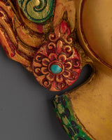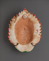 This Hand-Carved Bhairava Wooden Wall Hanging embodies the fierce compassion and protection found in Tibetan Buddhism. Featuring intricate details like the third eye symbolizing higher wisdom and a blazing aura of transformation, this mask connects deeply with the revered protector Mahakala. Expertly carved and painted by skilled artisans, it is more than decorative. This sacred piece brings powerful protection and auspicious energy to your meditation space, shrine, or living area. Enhance your environment with authentic spiritual blessings and Himalayan craftsmanship.