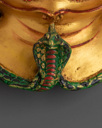 Bhairava is revered as a fierce guardian deity, embodying divine wrath that destroys negativity and protects sacred spaces. Known as a manifestation of Lord Shiva in Hinduism and closely connected to wrathful forms like Mahakala in Buddhism, Bhairava’s terrifying expression symbolizes his power to annihilate ignorance while safeguarding spiritual practice. His fiery hair, bulging eyes, and crown of skulls represent transformation, wisdom, and liberation from fear, making him a powerful protector in homes, temples, and meditation spaces.