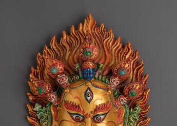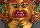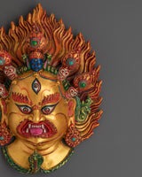 Hand-Carved Bhairava Wooden Wall Hanging | Acrylic Painted Buddhist Protector Mask