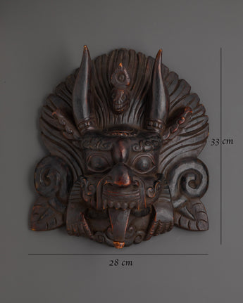 Enhance your sacred space with the powerful presence of the Handcrafted Garuda Wall Hanging Mask. Measuring 33cm in height and 28cm in width, this wooden mask beautifully represents Garuda, a revered protector deity in both Hindu and Buddhist traditions. Expertly hand-carved and painted with vibrant acrylics, it features intricate details and bold, dynamic expressions that symbolize strength and guardianship. Perfect for meditation areas, altars, or as a striking centerpiece, this mask invites protection and divine energy into your home while adding a captivating artistic touch.
