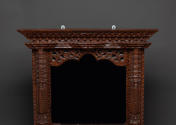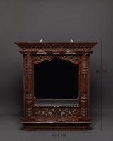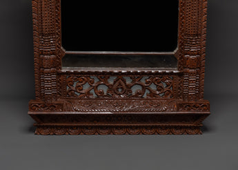 This handcrafted wall mirror is made of wood. It not only works as a mirror, but it also gives spiritual and cultural richness to your home. The craftsmanship demonstrates the skill of the artisans, as they carve each detail by hand, ensuring that no two pieces are identical. This mirror has a classic look that will never go out of style. Its traditional charm will enhance the appearance of any room.