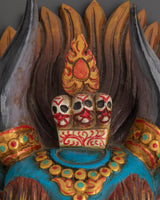 Expertly handcrafted from wood and finished with rich acrylic colors, this Garuda wall hanging radiates vibrancy and depth. Every detail of the carving highlights the artisan’s devotion, showcasing Garuda’s dynamic wings and powerful stance. As a spiritual wall art piece, it embodies Himalayan craftsmanship while carrying deep cultural and sacred significance. Place it in your home or shrine to invite divine protection, spiritual balance, and blessings into your space.