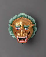 Each mask features piercing eyes, powerful fangs, and flowing green hair to represent strength and balance. The bright golden face symbolizes spiritual enlightenment and purity, while the whole design acts as a guardian, attracting positive energy and repelling negativity. This Mythical Guardian Wall Hanging is more than just decoration; it's a poignant tribute to rich cultural symbols and eternal legacy.