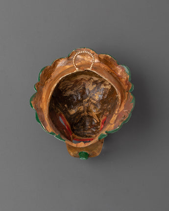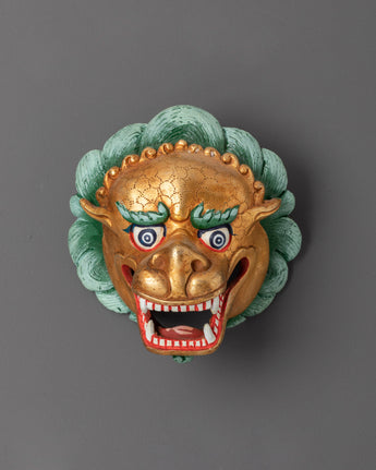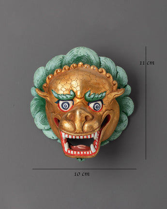 Transform your room with this stunning Mythical Guardian Wall Decor, which includes a pair of handcrafted lion masks inspired by traditional Tibetan customs. These gold-plated copper masks are meticulously hand-painted in brilliant acrylic hues to depict the renowned Tibetan Snow Lion, a potent symbol of protection, bravery, and spiritual force.
