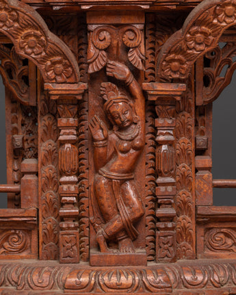 Every aspect of this hand-carved wooden wall art embodies the ancient tradition of Newari architecture, from floral and geometric carvings to deity-inspired sculptures that hold spiritual significance. This Nepalese wood carving brings a powerful, spiritual presence to any venue, including spiritual areas, altars, yoga studios, and ethnically designed homes. Whether you're decorating a temple-inspired room or looking for heritage wall decor, this religious architecture decor is both a cultural statement and a visual marvel.