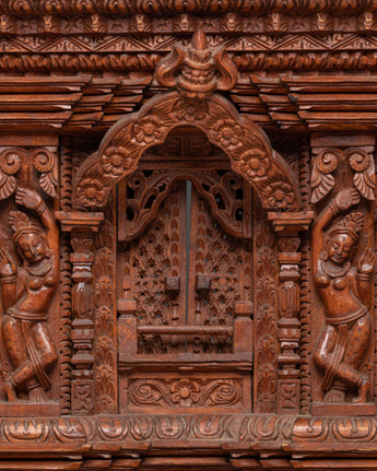 Sacred Architecture Decor | Large Hand-Carved Wooden Temple Window from Nepal