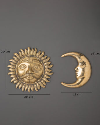 Brass Sun and Moon Wall Hanging Set | Celestial Vastu Decor for Balance and Harmony
