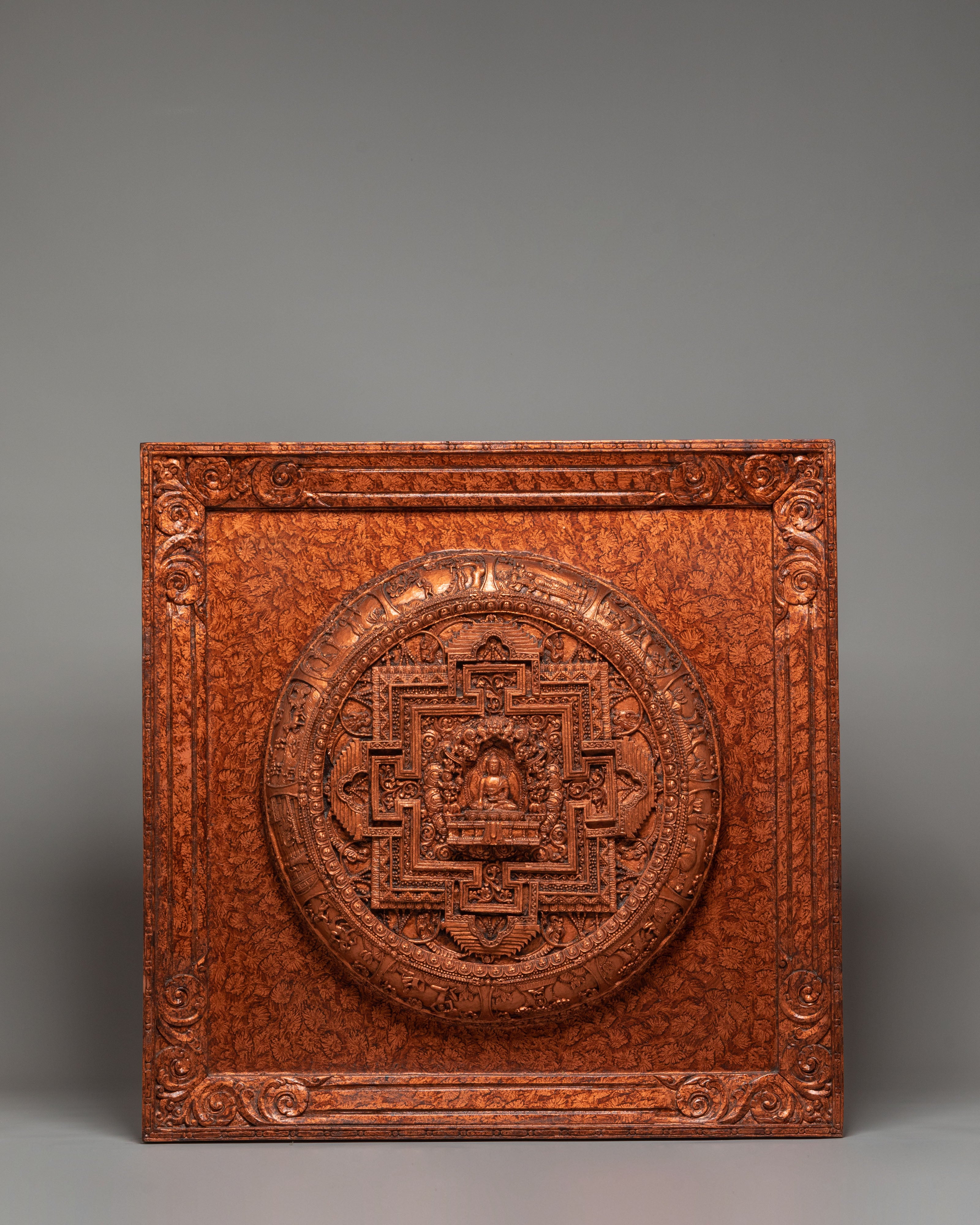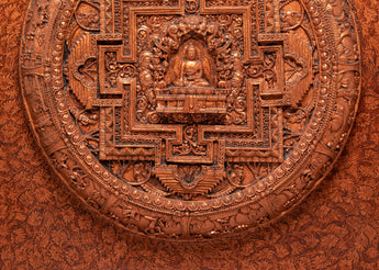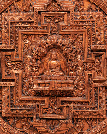 This, the First Buddha Shakyamuni Wall Hanging, is a spectacular, intricately detailed representation of Shakyamuni Buddha, the founder of Buddhism and the embodiment of enlightenment. Standing 76.5 cm high and 76.5 cm wide, this powerful wall hanging is crafted with stone-dust epoxy binding and a wooden back. Shakyamuni Buddha, seated in the classic lotus position, symbolizes peace, wisdom, and the path to enlightenment. The design captures the profound serenity of the Buddha, inviting a sense of calm, reflection, and spiritual growth into any room.