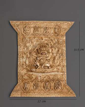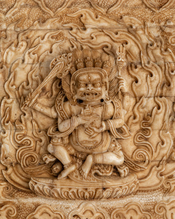 Sacred Tibetan Bone Carving Four Armed Mahakala | Symbol of Protection and Strength