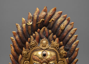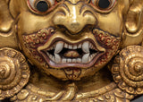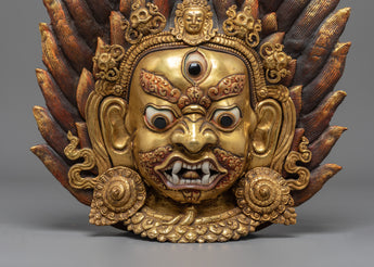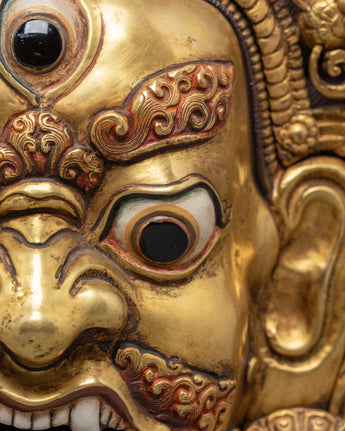 This Gold Gilded Mahakala Wall Hanging is both a holy protector and a strong symbol of Tibetan heritage. It is ideal for altars, meditation places, or home interiors, since it exudes strength, bravery, and heavenly care. Whether you are a Buddhist practitioner or a collector of Himalayan art, this work has both spiritual meaning and artistic majesty - an everlasting representation of power and devotion.