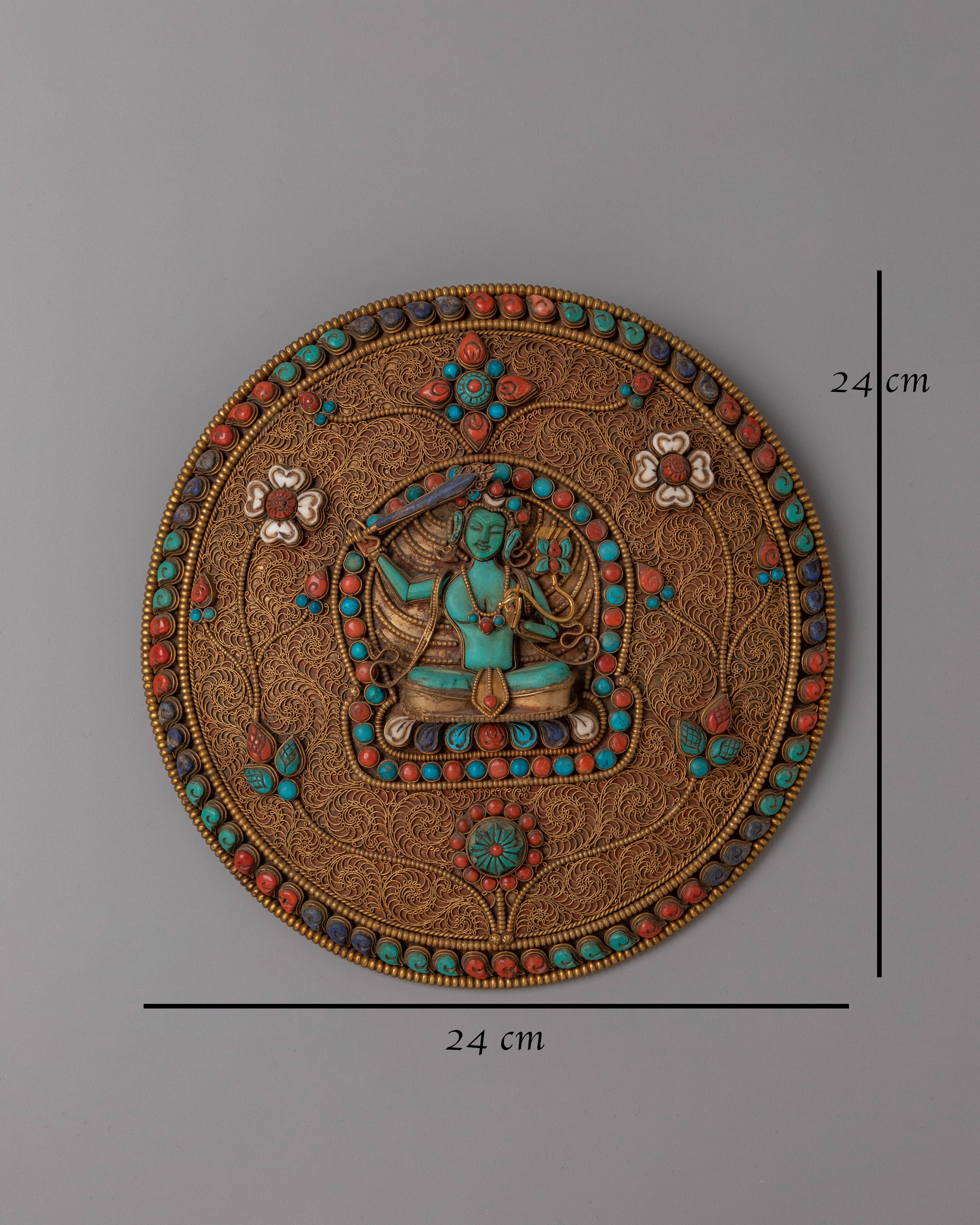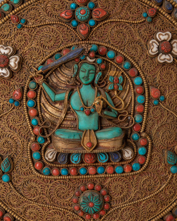 Handmade Manjushri Deity Decor | Tibetan Filigree Sacred Ornament