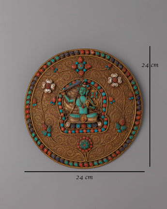 Sacred Tibetan Manjushri Wall Hanging | Buddhist Copper Art