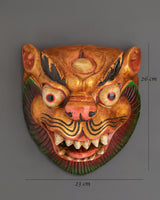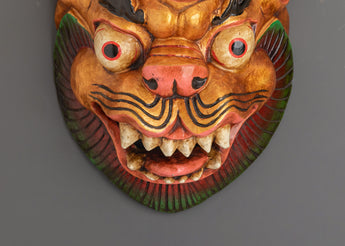 Crafted by skilled artisans, this Tibetan-style wooden Mask Wall Hanging features intricate carving and expressive facial details that capture its cultural essence. The natural wood texture paired with striking acrylic colors creates a visually captivating piece that enhances any space. Ideal for meditation rooms, altar areas, or as a distinctive cultural accent in your living room, this mask serves both decorative and symbolic purposes. Rooted in Tibetan tradition, it represents strength, wisdom, and spiritual protection, making it a meaningful addition that invites positive energy and a sense of calm into your home.