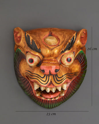 This Tibetan-style wooden Mask Wall Hanging is an example of Himalayan artistry, meticulously carved from wood and painted with vibrant acrylic colors. Measuring 26cm tall and 23cm wide, it offers a perfect balance of size and presence for any space. Weighing just 0.54kg, it is easy to mount on your wall, bringing a touch of authentic Tibetan culture into your home. Traditionally used in monasteries and temples, this mask symbolizes a powerful spiritual protector that wards off negative energies and attracts positive blessings, making it an inspiring and meaningful addition to your décor.