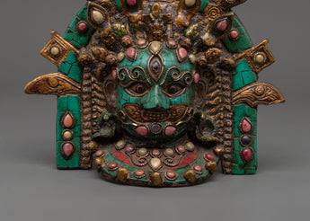 These deity-inspired masks are essential in Tibetan and Himalayan Buddhism, representing powerful energy that drives away negativity and protects spiritual seekers. The exquisite craftsmanship and the healing meaning of turquoise and coral transform this wall art into a spiritual guardian for any setting. Its heavyweight and handmade craftsmanship assures a significant and enduring presence in your spiritual decor collection.