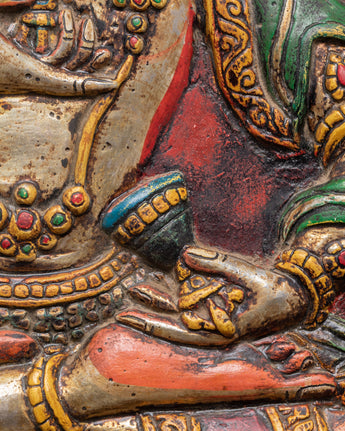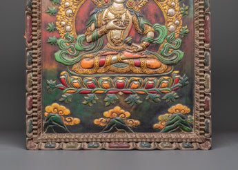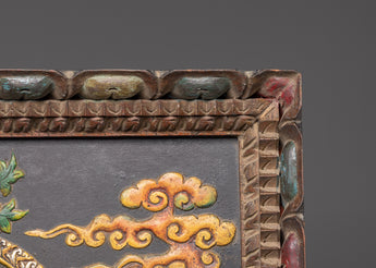 The exquisite outer wooden frame is thoughtfully created to highlight the holy presence of Vajrasattva, who is adored in Tibetan Buddhism for his relationship with cleansing and enlightenment. This artwork, weighing 4.86kg, commands attention and is ideal for displaying over an altar, as a centerpiece for a meditation corner, or as a spectacular exhibition of spiritual art. The hand-painted embellishments highlight the craftsmanship and commitment put into each work, which honors Buddhist culture and legacy.