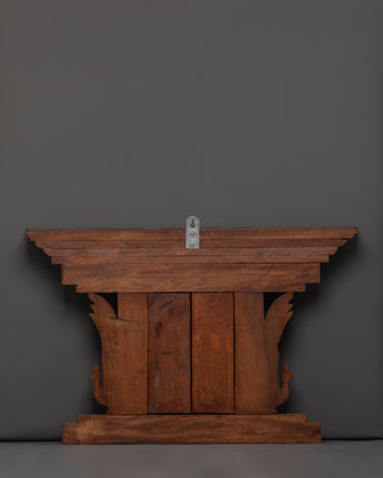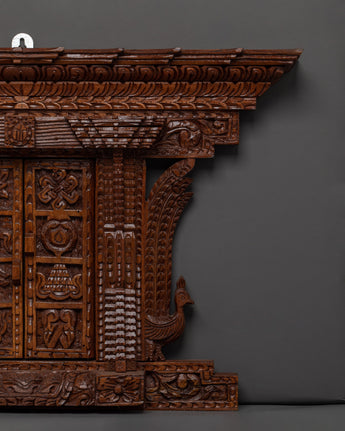 Elevate your living space with this gorgeous wooden door wall hanging, which is masterfully hand-carved from wood to capture exquisite classical designs. This magnificent wooden wall art, measuring 33.5 cm in height and 49 cm in width, adds the beauty of ethnic craftsmanship and rustic charm to your home. Its intricate carvings, which include symbolic peacock motifs and cultural patterns, transform it into a unique accent piece, ideal for individuals who value artisanal design and spiritual home elements.