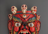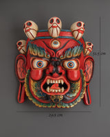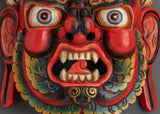 Handcrafted Wrathful Deity Wall Hanging | Wooden Tibetan Protector Mask