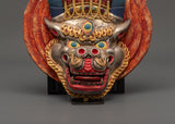 Yamantaka Buddhist Protector Deity Wall Hanging | Handcrafted Silver & Gold-Plated Buddhist Mask