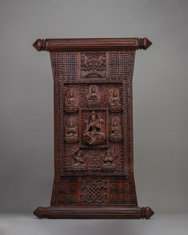 Wood-Carved Wall Décor – Warm and textural designs with motifs like lotus, Endless Knot, or protective deities.